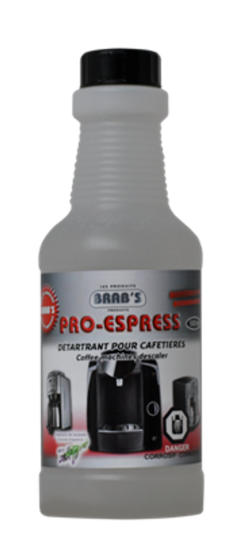 Pro-Espress est un détartrant actif spécialement formulé pour détartrer rapidement et efficacement les cafetières, bouilloires, théière et composantes de machines à café et espresso.